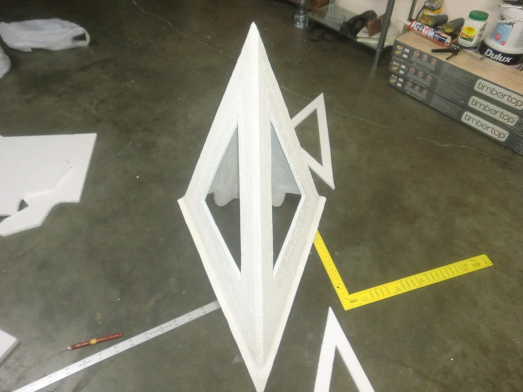 Now is the fun part...painting it. I used a base coat of grey and sprayed streaks of black and red in places to make it look aged and bloody. Careful with the paint as applying too much in one go will melt the foam, it's better to apply multiple lighter coats than one coat in one go.