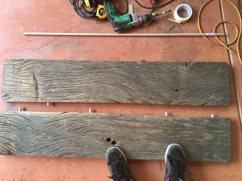 After the plaining came the task of cleaning out the cracks. This wood was water logged and so was filled with mud. I used an air compressor to blow all this out. Eventually it was all masked off and ready for pouring of the resin.
