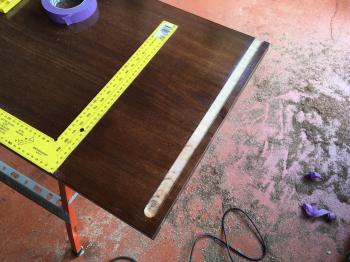 The first thing I did was to have the wood cut down to size. The place I got it from cut it roughly to my required dimensions, but I had to trim it down to exact measurements myself at home. After the two pieces were glued together and a great deal of plaining (with a power plane) went in to make the combined piece as flat as possible. There was a slight warp in the wood so it took lots of plaining to get it level.