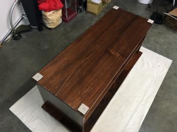 At this point I also finished sanding the top piece, including rounding the edges and started to lacquer it.