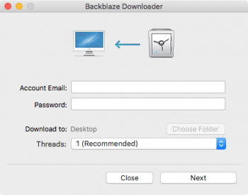 The downloader app was very easy to use too. All I had to do was login with my account details and select the restore that was created earlier. There were options for controlling how many threads were used for downloads as well as the download location.