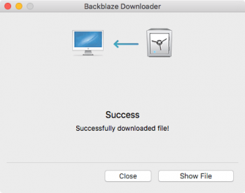 The restore was created as a single zip file. It took a few minutes for the file to be prepared. An email was sent out with a link when the download was ready. There were two options to obtain this file, either by downloading it using a web browser or using the BackBlaze Downloader app - I picked the app.